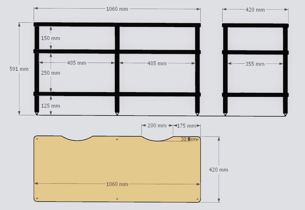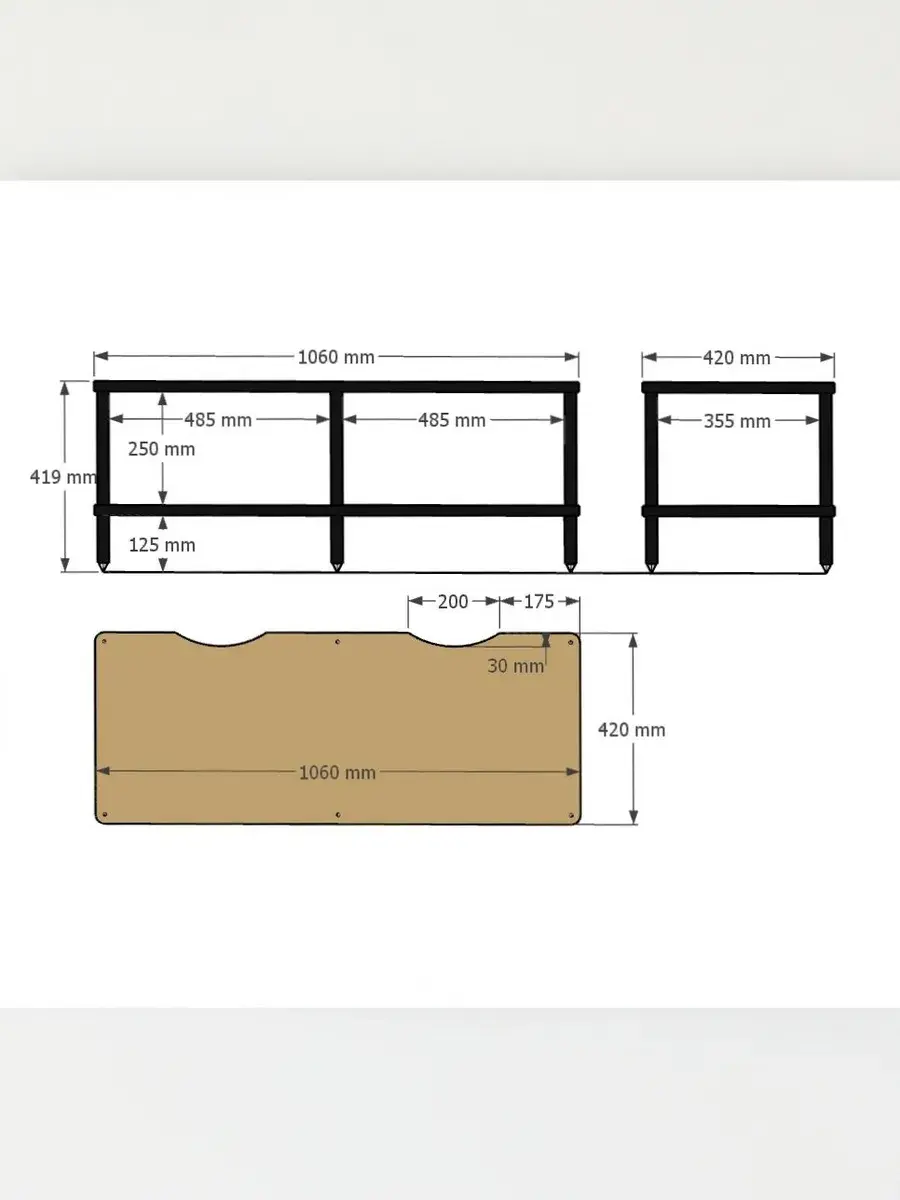 Размеры: высота 769 мм, глубина 420 мм, ширина 1060 мм