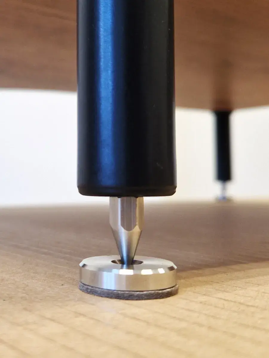 Виброразвязка: в комплекте 6 регулируемых шипов М6 из немагнитной нержавеющей стали для виброразвязки, а также диски для защиты пола с фетровыми наклейками