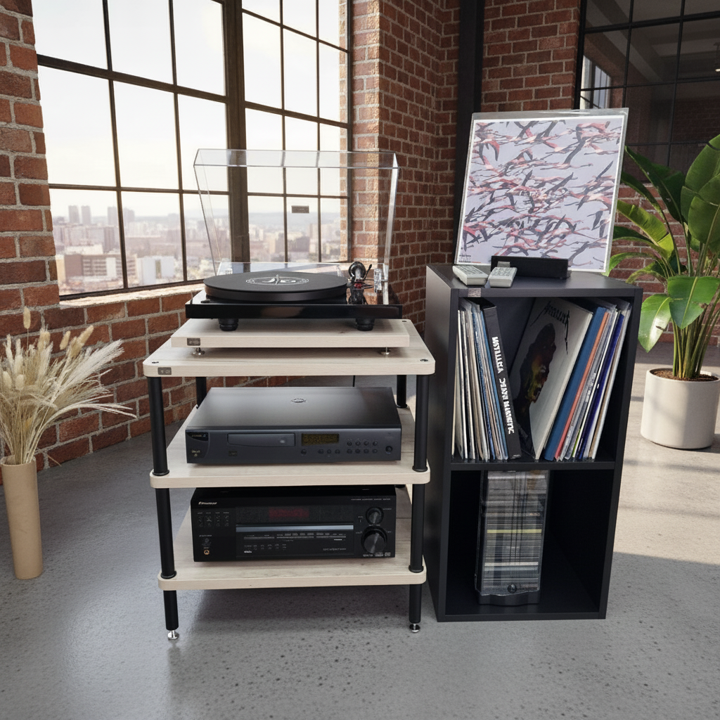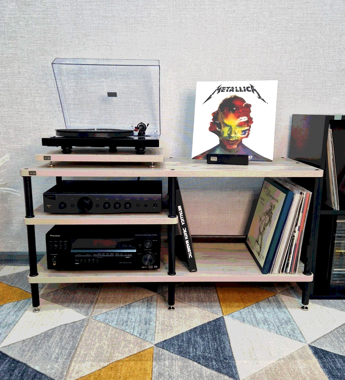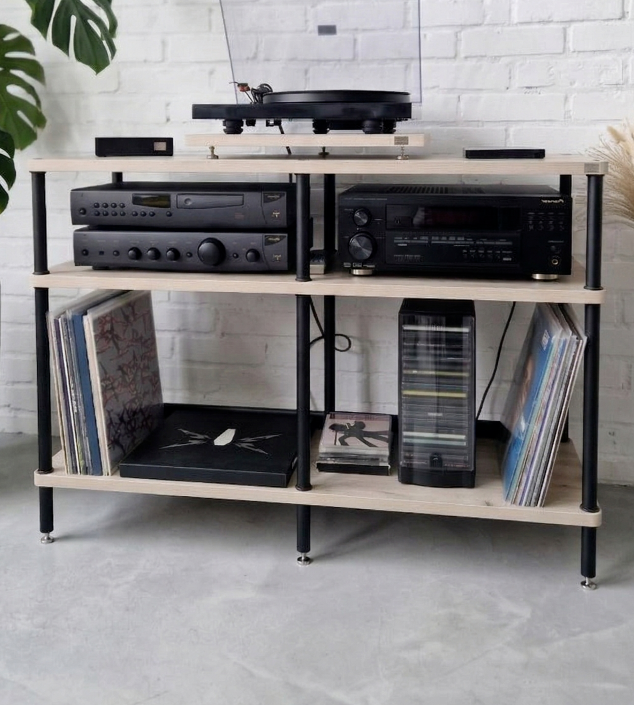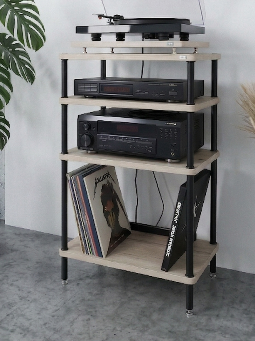 Оптимальное расстояние между полками - удобство для размещения оборудования и пластинок.
