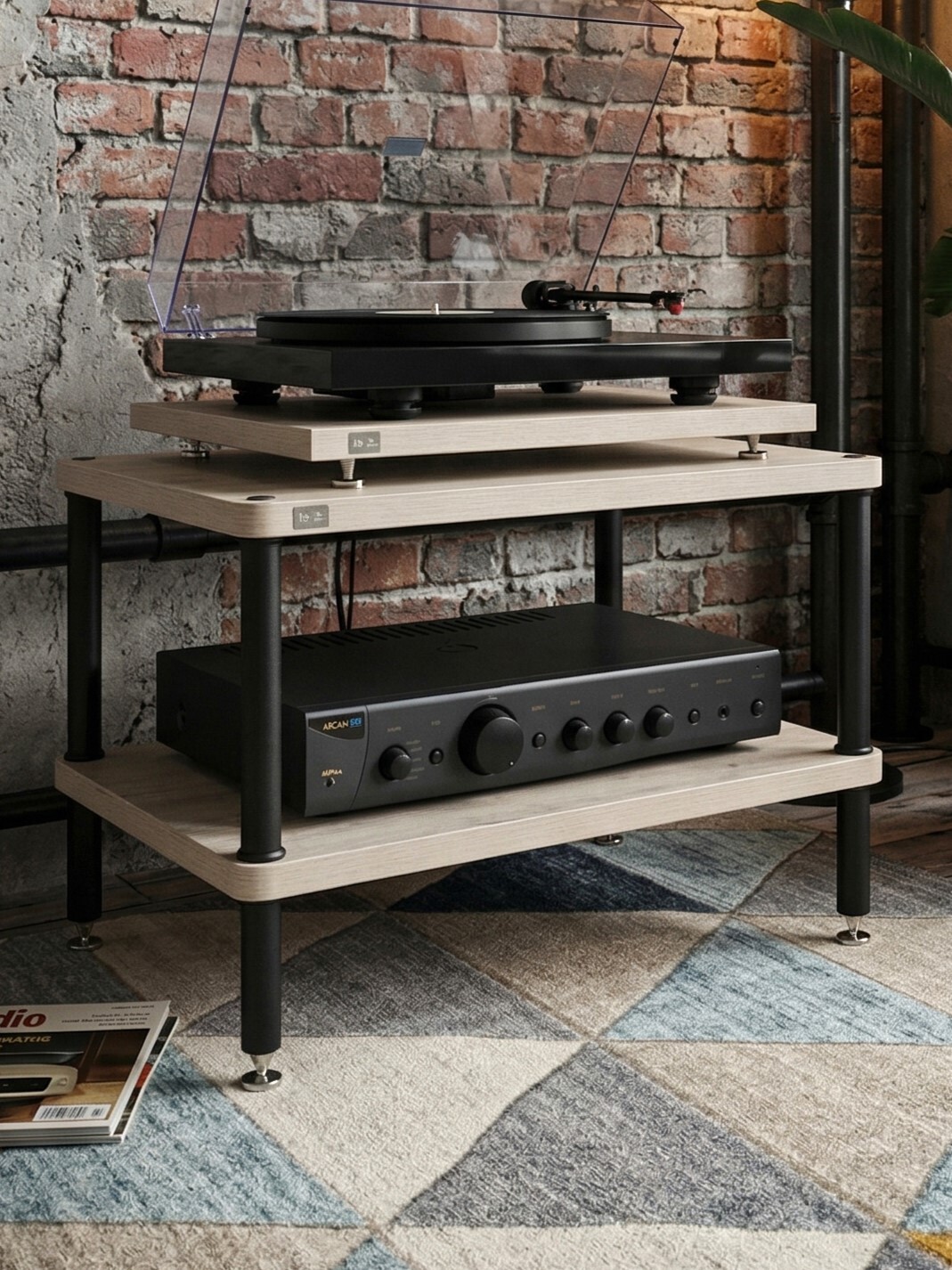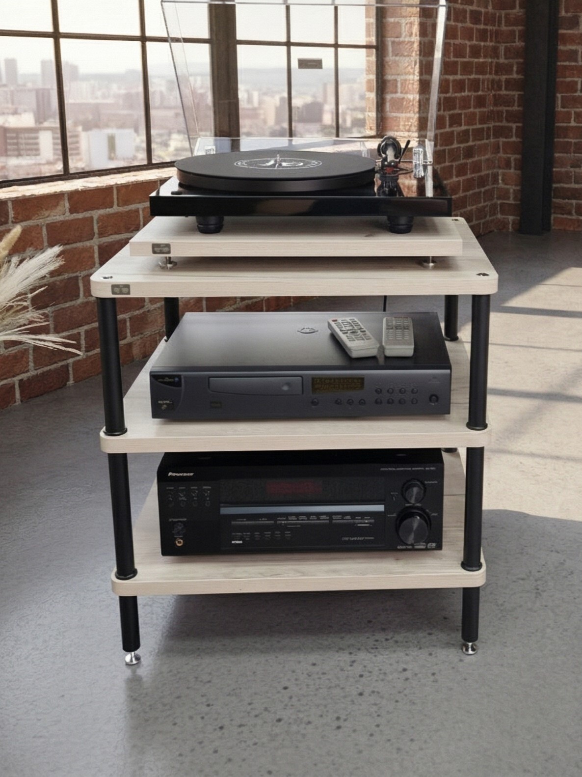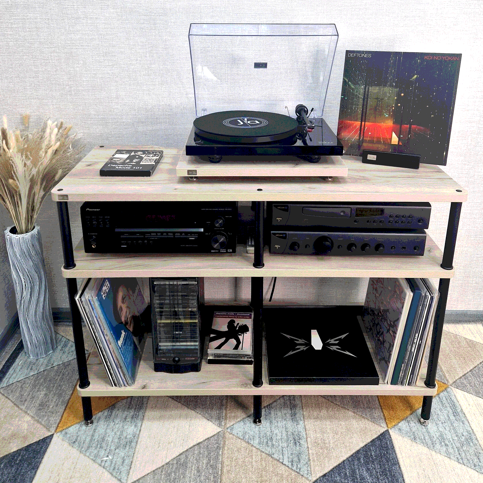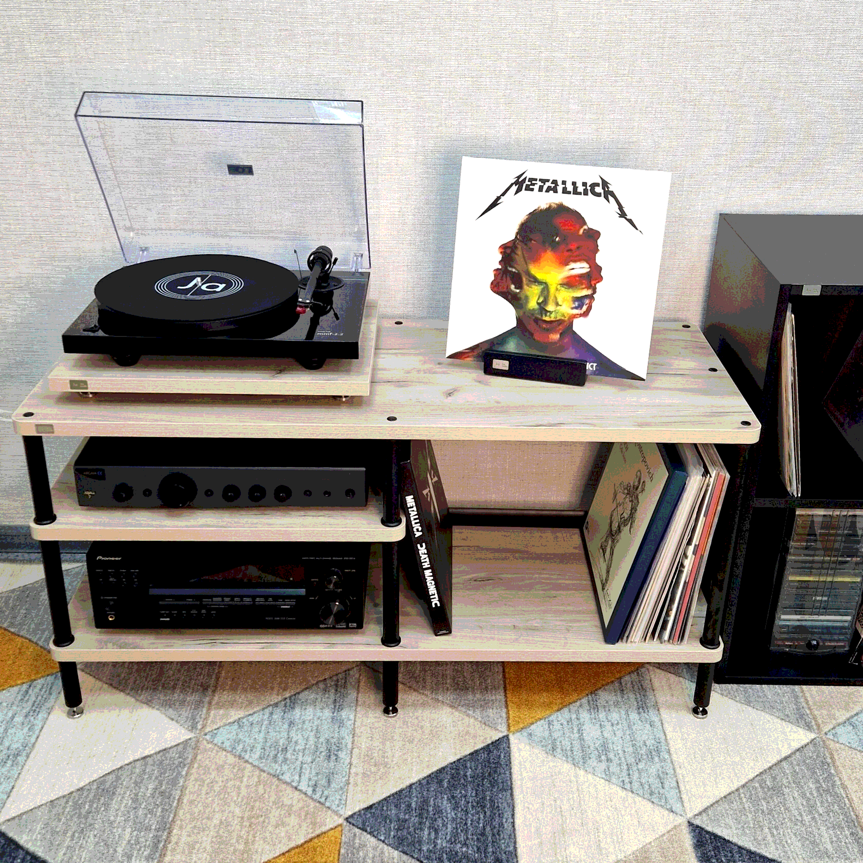 Оптимальное расстояние между полками - удобство для размещения оборудования и пластинок.