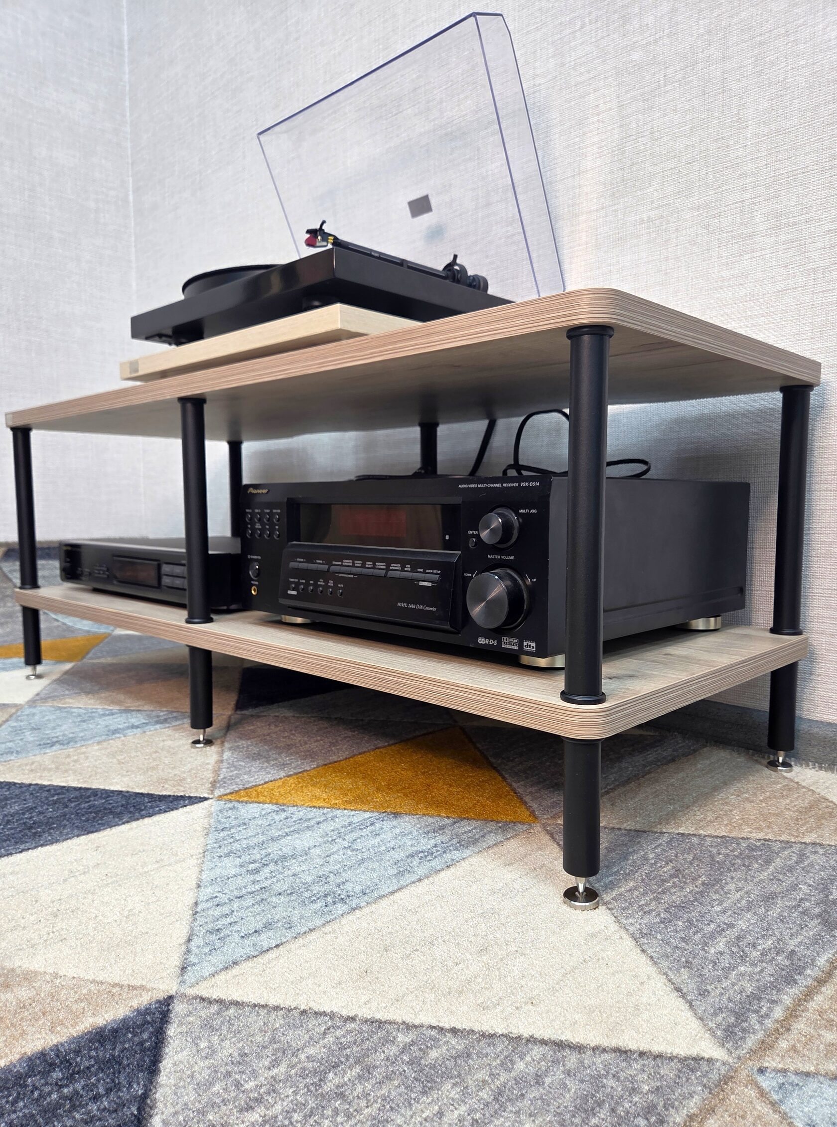 Открытая конструкция стойки позволяет достичь оптимальной вентиляции стерео компонентов