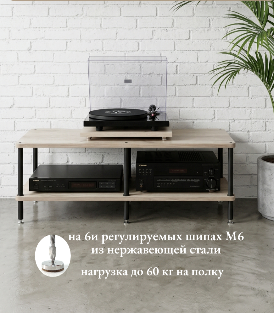 Стойка для аудиотехники PRIME разработана для меломанов, ценящих детализированный звук без искажений. Благодаря продуманной конструкции и системе виброразвязки она минимизирует паразитные колебания, обеспечивая максимально чистый и точный звук вашей Hi-Fi аппаратуры и винилового проигрывателя.
