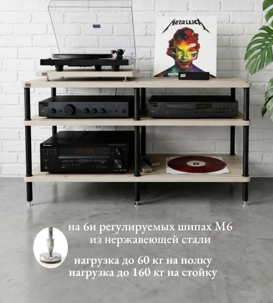 Простая сборка, инструкция в комплекте. Собственное производство на территории РФ. Возможен индивидуальный заказ на 1, 6, 7, 8 этажей. Ножки высотой 150, 200 и 250 мм можно приобрести отдельнов разделе Аксессуары. Цена указана за 2, 3, 4 или 5-этажную стойку.Podium для проигрывателя, подставка под пластинки, стенды для полочной акустики и иные аксессуары на фото товара в комплект стойки НЕ входят и продаются отдельно.