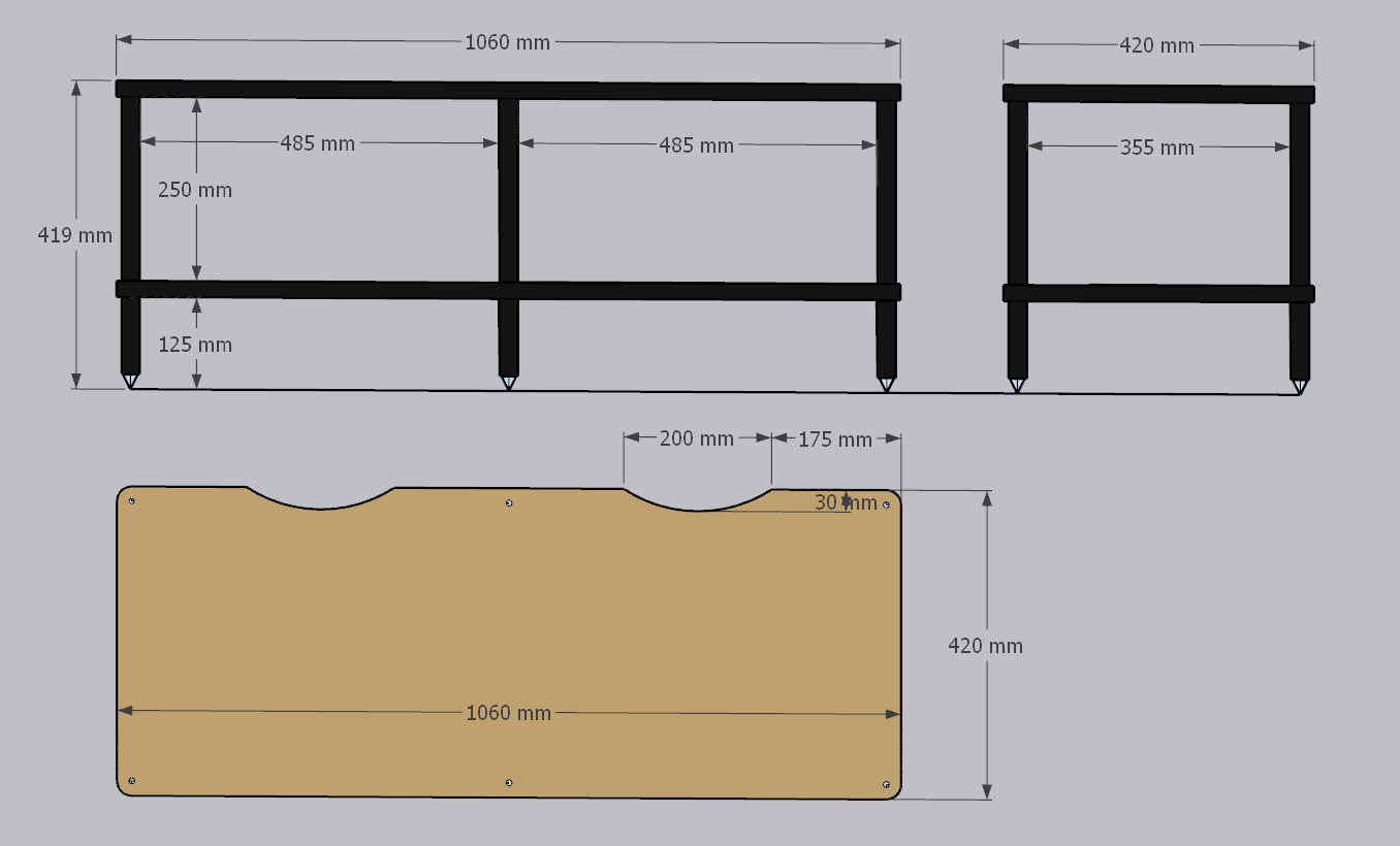 Расстояние между полками: нижний этаж 200 мм, верх 150 мм (смотрите схему в фотогалерее), при желании можно поменять местами.