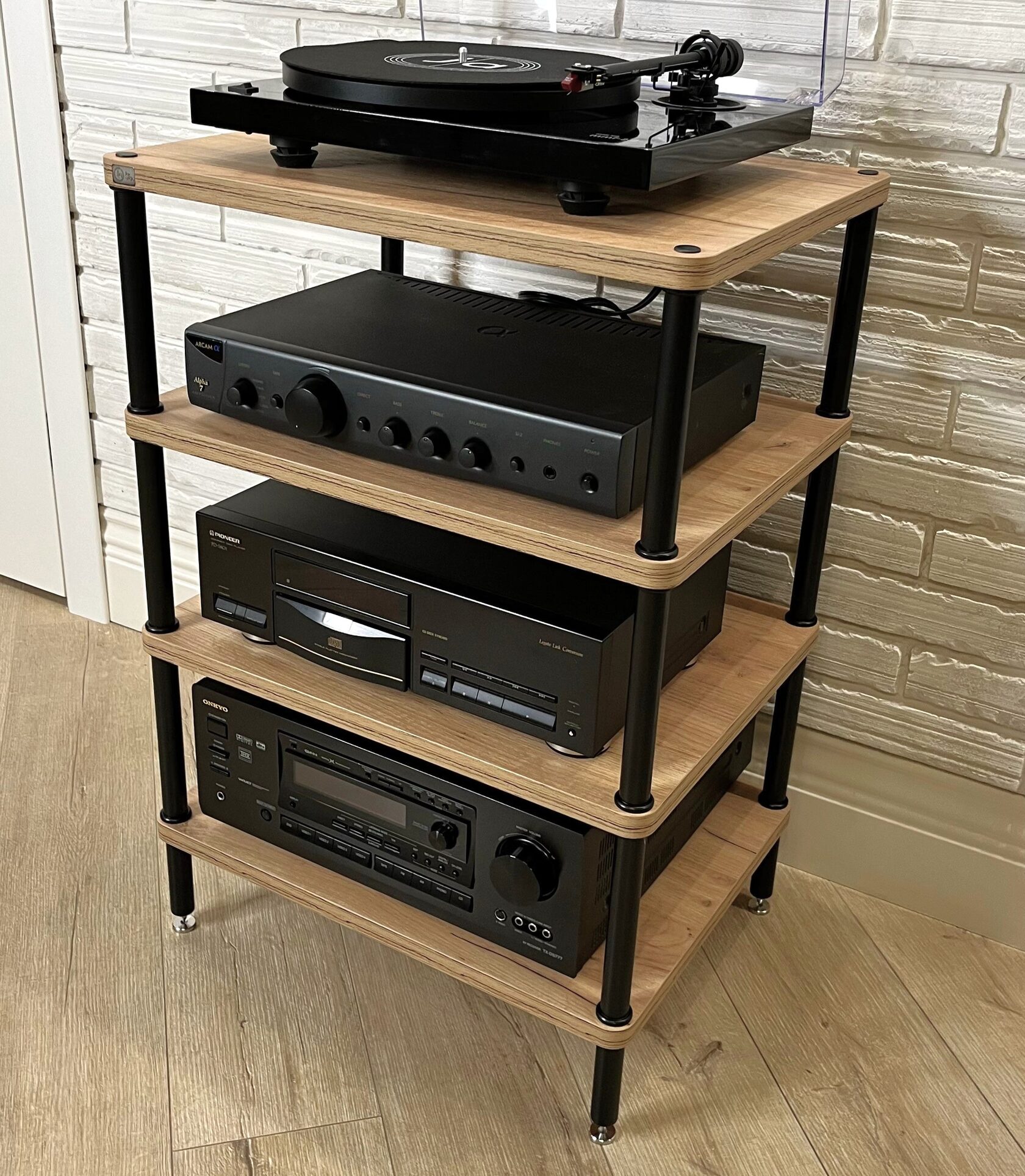Материал полок из ЛДСП высокой плотности 22 мм обеспечивает необходимую жесткость конструкции и отлично справляется с поглощением нежелательных вибраций .