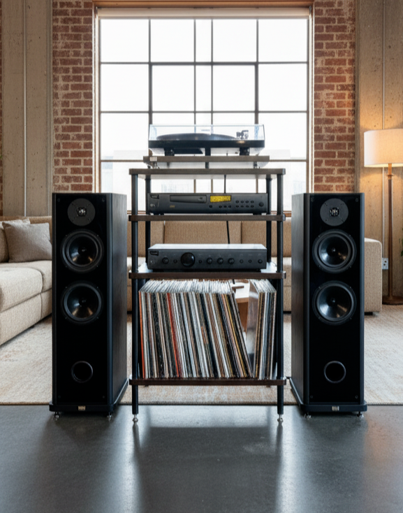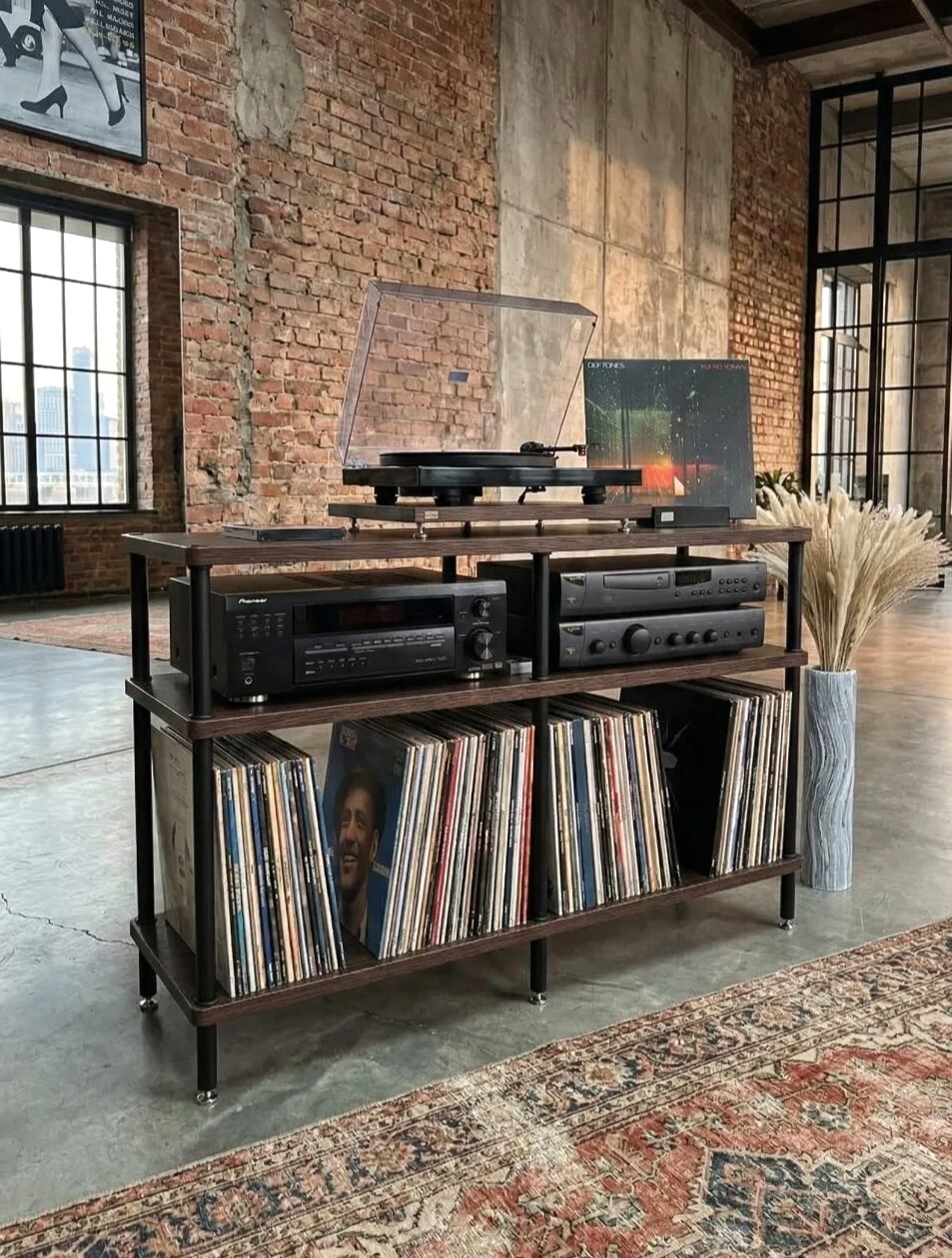 Оптимальное расстояние между полками - удобство для размещения оборудования и пластинок.