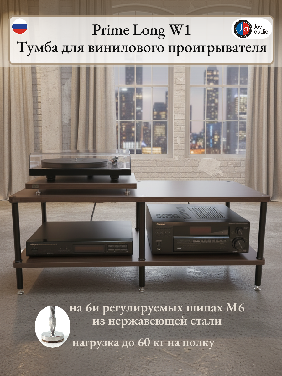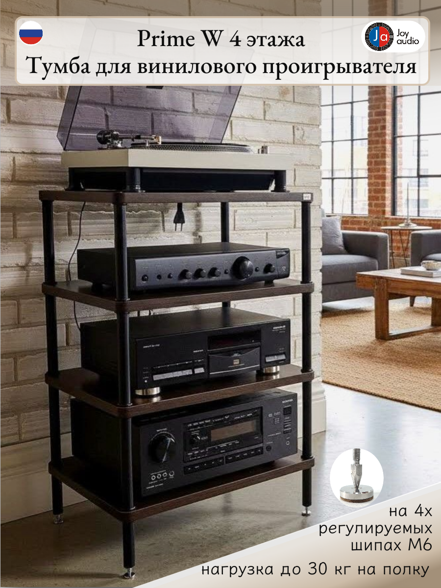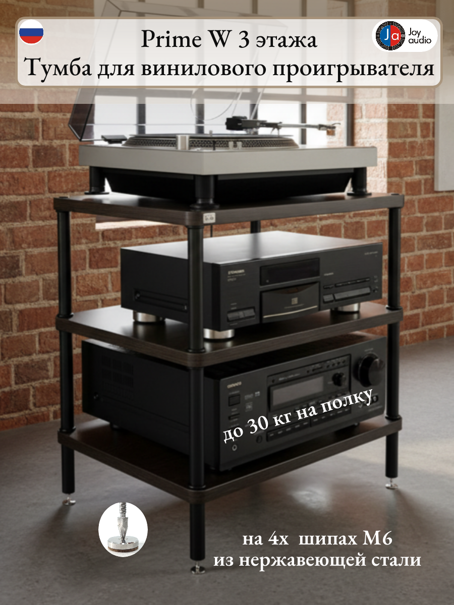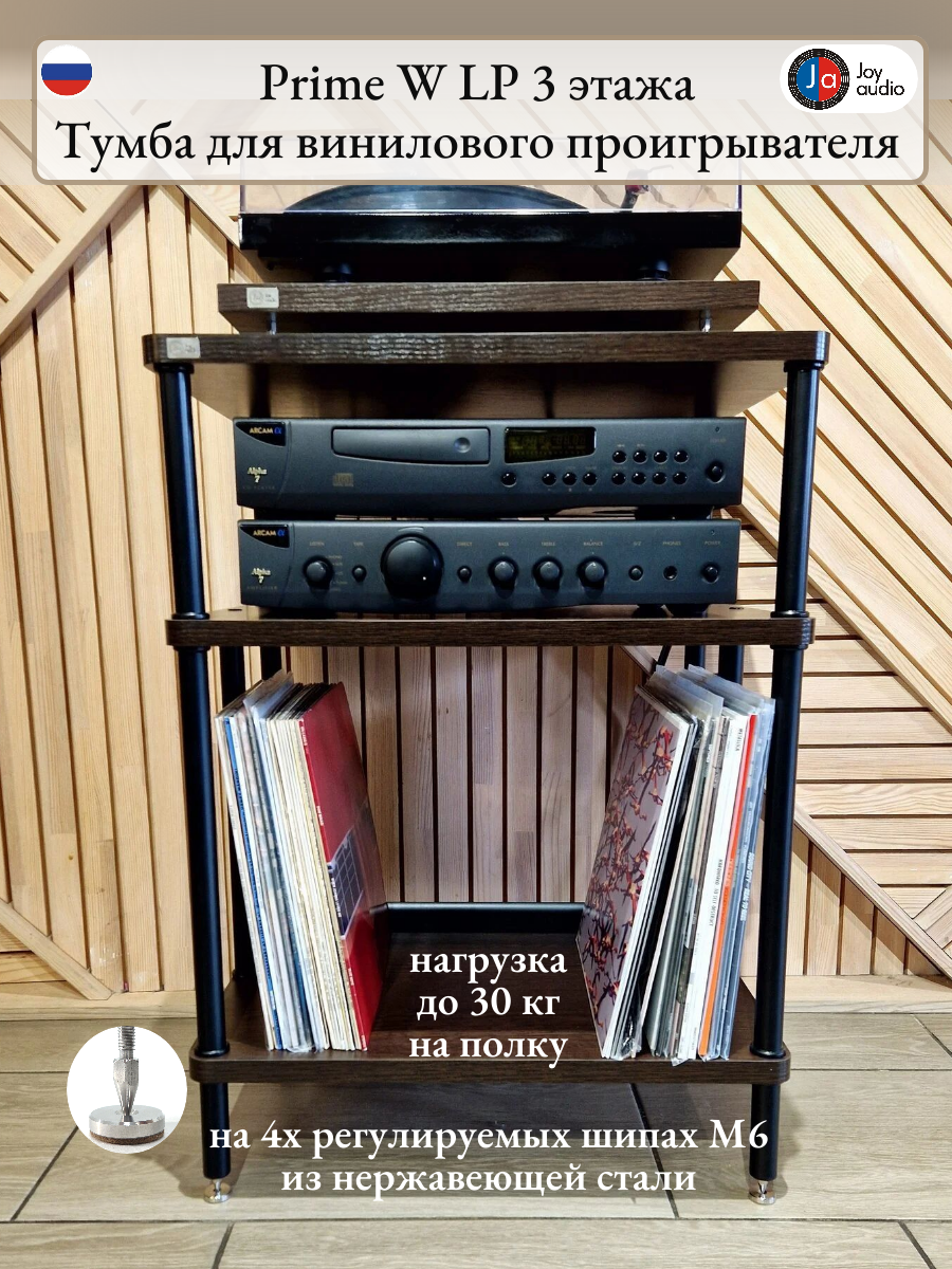 Стойка для ауди аппаратуры и винила PRIME LP разработана для меломанов, ценящих детализированный звук без искажений. Благодаря продуманной конструкции и системе виброразвязки она минимизирует паразитные колебания, обеспечивая максимально чистый и точный звук вашей Hi-Fi аппаратуры и винилового проигрывателя. Prime W3 LP (3 этажа) высота 763 мм, глубина 420 мм, ширина 550 мм Габариты упаковки (см): 59*46*13, вес 15,5 кг. Prime W4 LP (4 этажа) высота 935 мм, глубина 420 мм, ширина 550 мм Габариты упаковки (см): 1 коробка 59*46*11, вес 13,8 кг; 2 коробка 52*19*8, вес 5,7 кг.