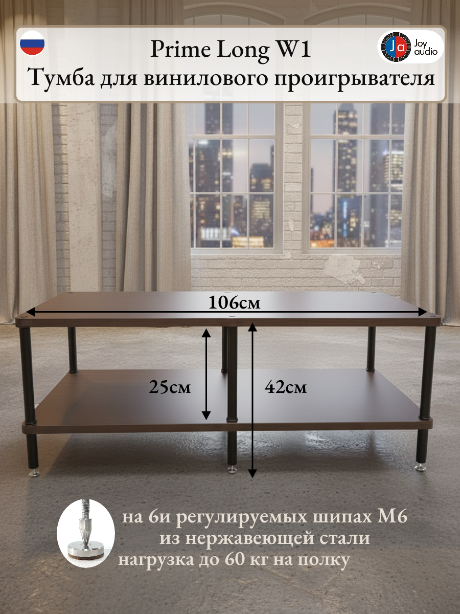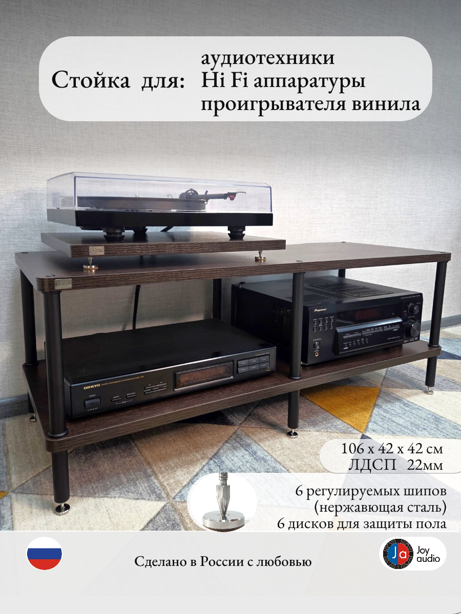 Простая сборка, инструкция в комплекте. Собственное производство на территории РФ. Цена указана только за стойку. Podium для проигрывателя, подставка под пластинки, стенды для полочной акустики и иные аксессуары на фото товара в комплект стойки НЕ входят и продаются отдельно.