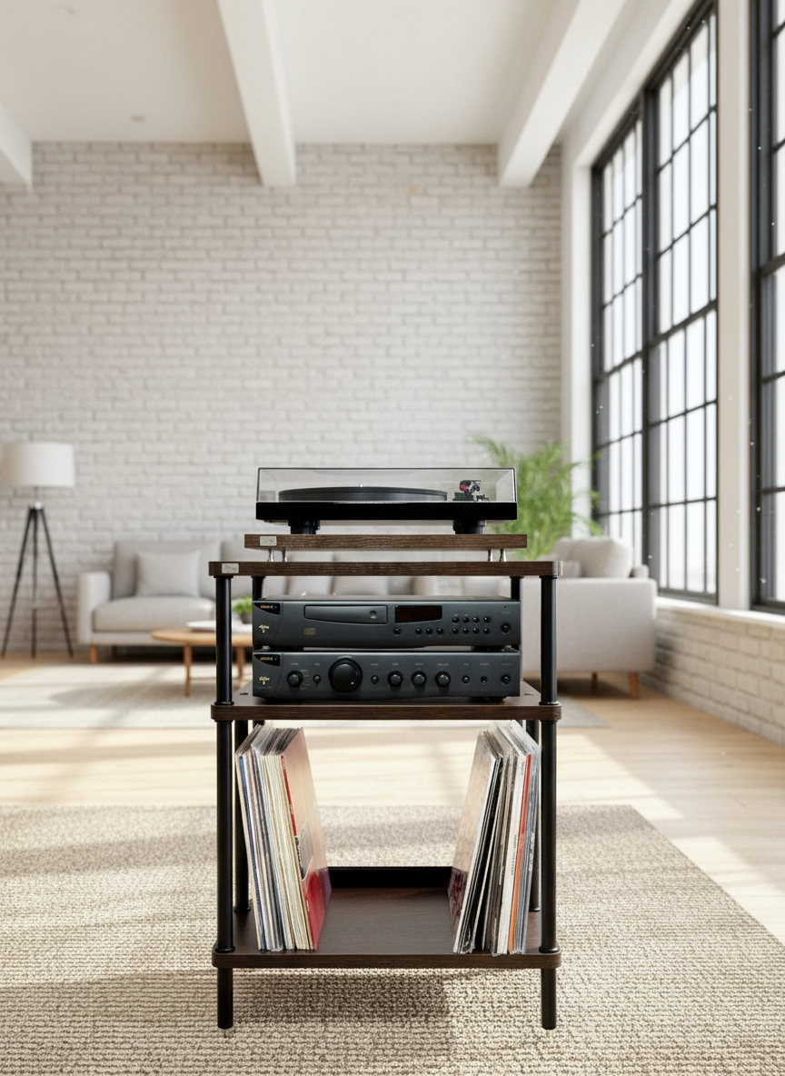 Подставка для винилового проигрывателя с антивибрационной системой Очевидный выбор - Чистый аналоговый звук, достойный Вашей коллекции винила. Погрузитесь в идеальный мир звука - без помех и искажений. Эта профессиональная подставка создана для настоящих ценителей винила. Она нейтрализует вибрации и минимизирует резонанс, обеспечивая максимально детальное и чистое звучание ваших пластинок. Стильный минималистичный дизайн в цвете венге цаво сделает подиум уникальным украшением любой системы.